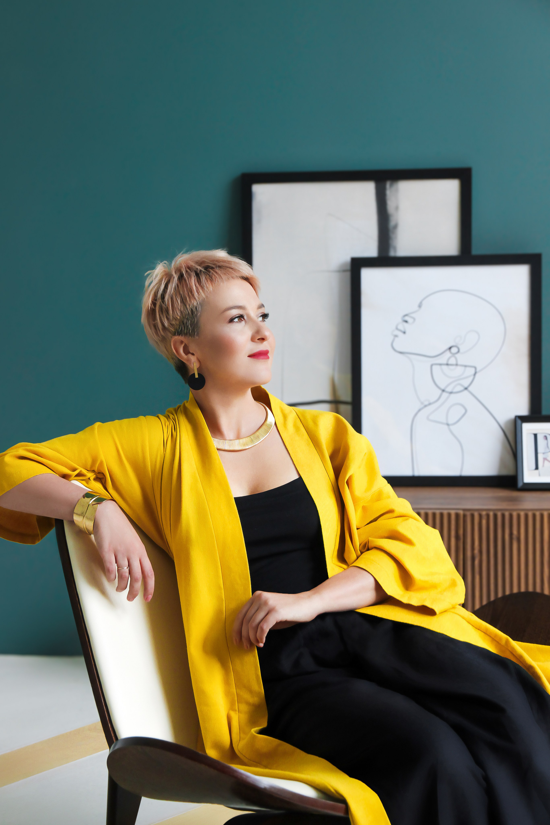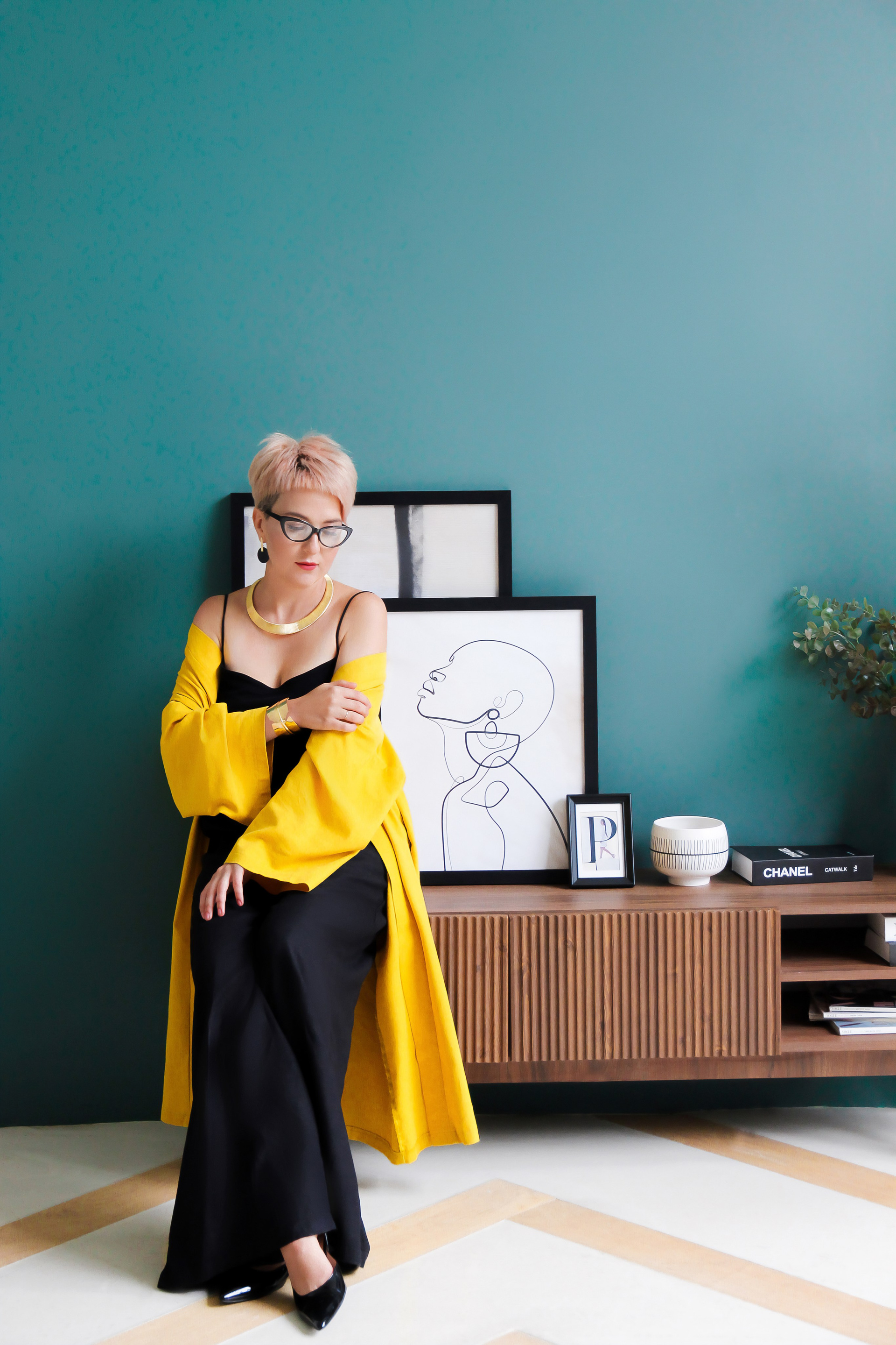 Получилась серия, где каждое фото — про кимоно, но при этом про человека в нём. Цвет работает как эмоция: жёлтый — это энергия, но в сочетании с чёрным и бирюзовым он становится сдержанным, стильным, почти графичным.